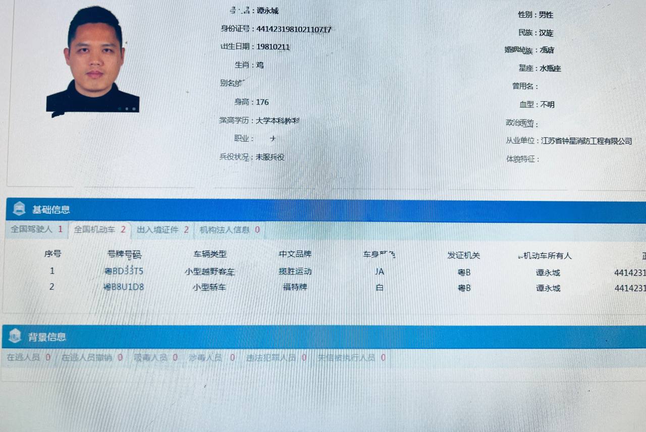 • 这里的电话不一定是其名下电话,可能是他人的名下电话,取决于录入车档时他写的电话。地址不一定是身份证地址。